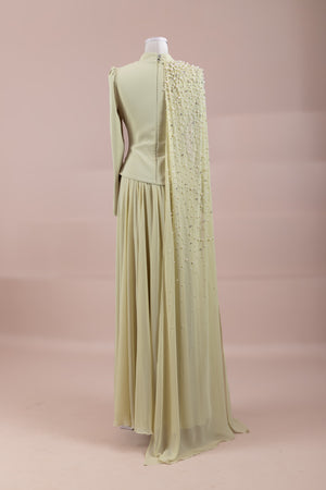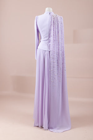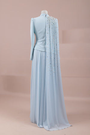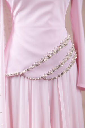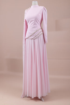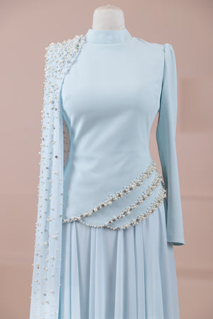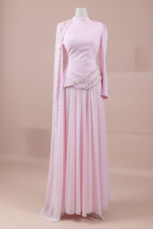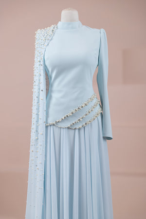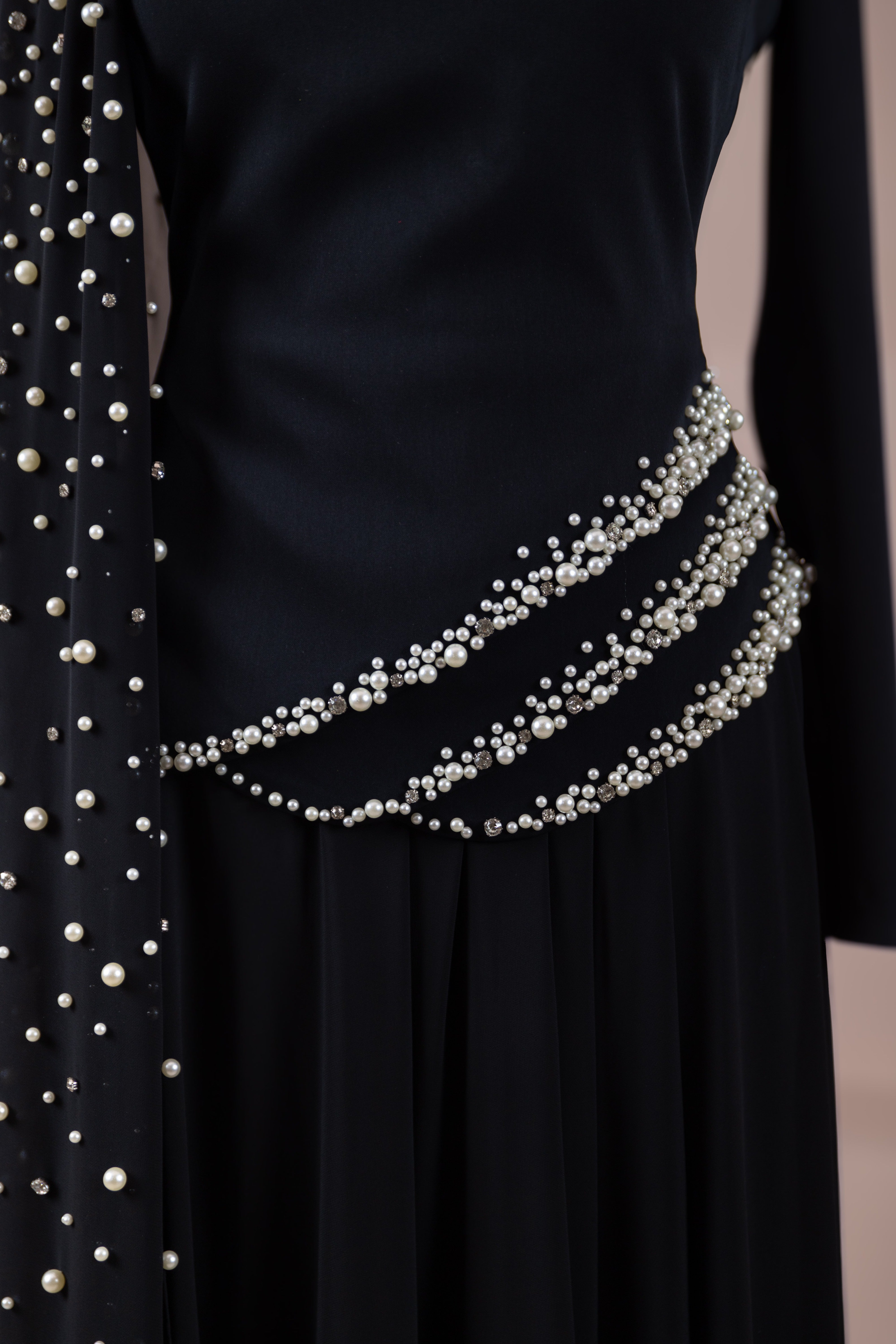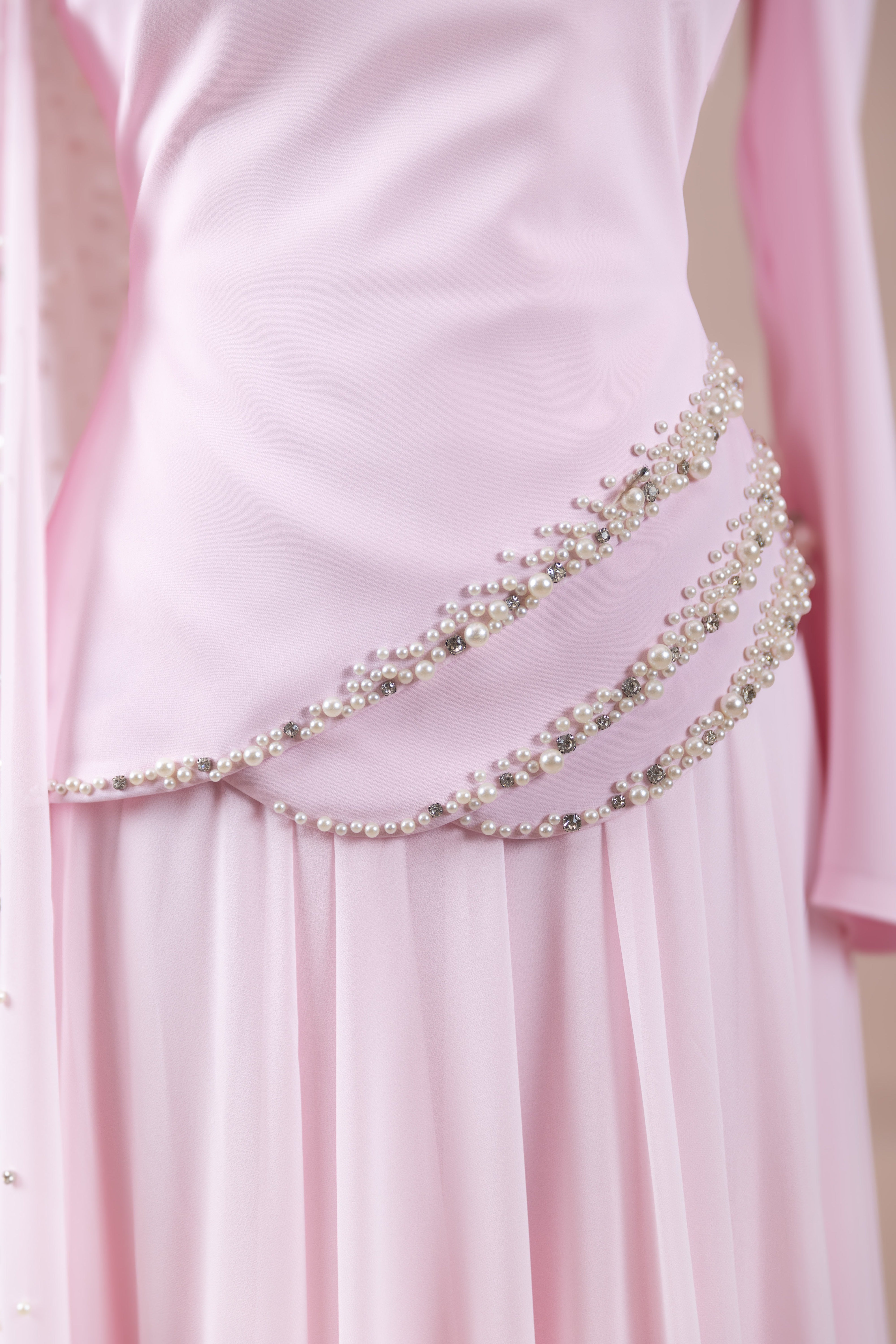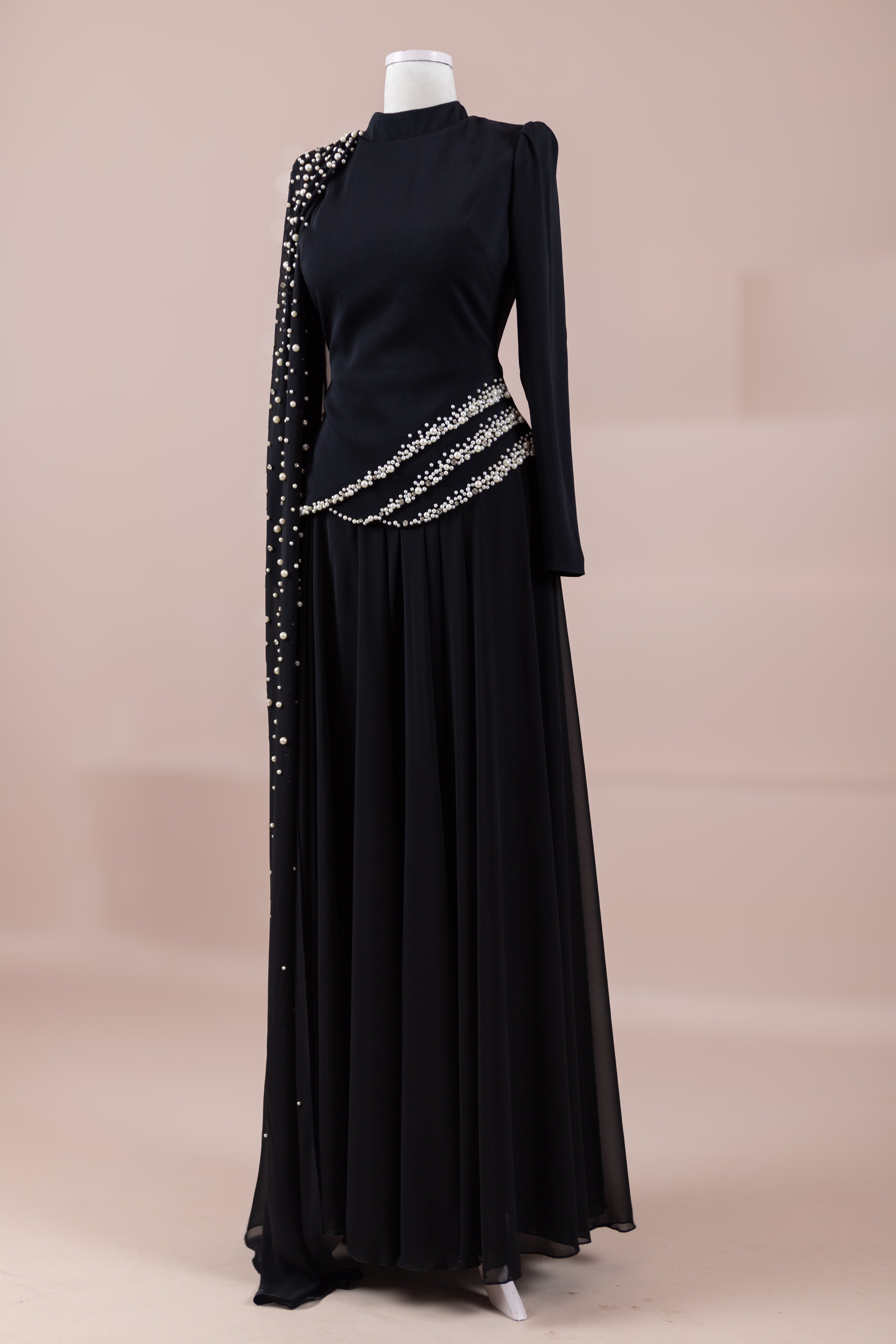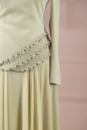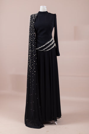 – Decoration with stone and pearl-like embellishments on the one shoulder